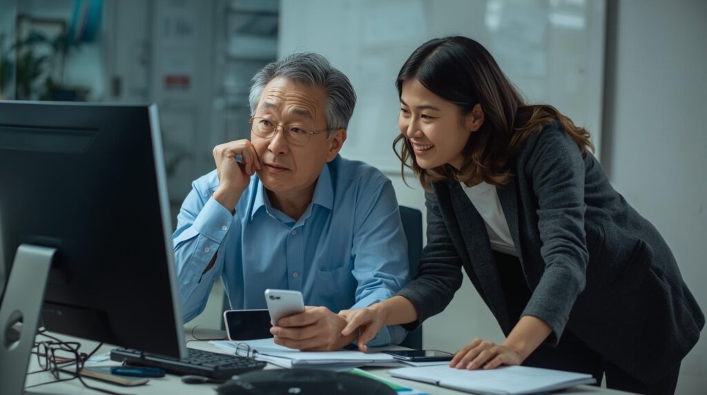 A: 大丈夫です。むしろ、そういった企業にこそ支援が必要です。OFFICE TAMAKIが実務レベルでサポートし、同時に社内にデジタルに強い人材を育てます。「わからない」前提で、丁寧に説明します。