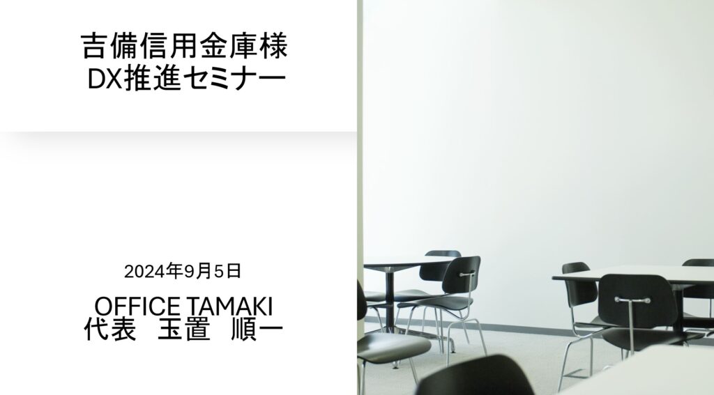 セミナーでは、DXの基本概念から金融機関での実践、中小企業DX化支援まで、段階的かつ体系的に解説。AI・IoT普及推進協会のプロセスガイドラインに基づく5ステップ(経営ビジョン策定、現状分析、DX戦略立案、ロードマップ作成、PDCA確立)を軸に、理論と実践を組み合わせた実用的な内容で構成いたしました。