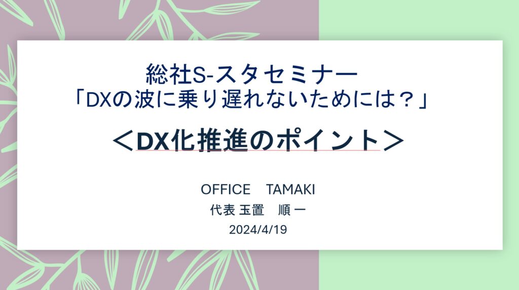 総社S-スタ主催のセミナーにおいて、「DXの波に乗り遅れないためには?」をテーマとしたDX化推進セミナーを実施いたしました。
